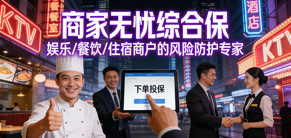 商家无忧综合保,聚焦娱乐、餐饮、住宿三大行业痛点,为商家量身打造全方位保障方案。覆盖顾客意外、财产受损、员工工伤三大核心风险,支持一键投保,助力商家安心经营。